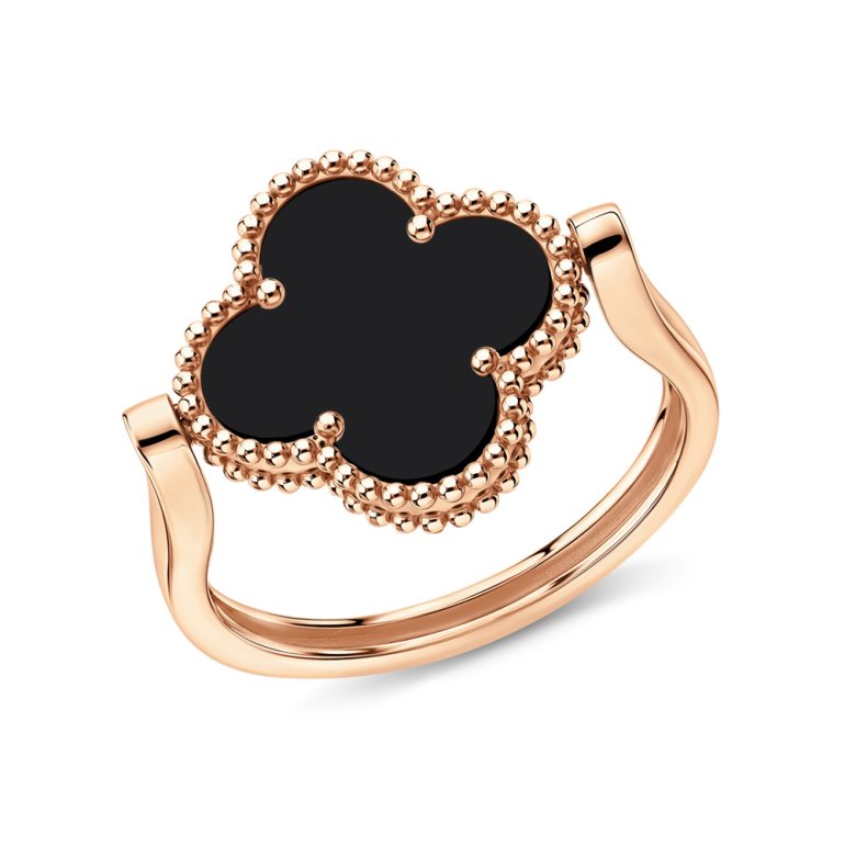 Кольцо с 1 агатом черным природным; Розовое золото 585 пробы.