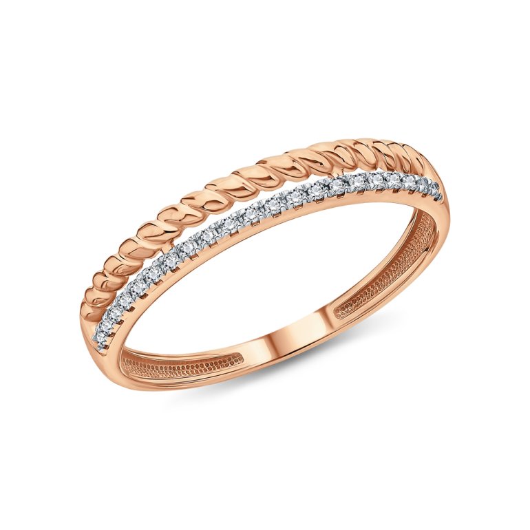 Кольцо с 21 бриллиантом природным, 0.066 карат, огранка круг 17 граней, цвет 2, чистота 2, тип огранки А; Розовое золото 585 пробы.