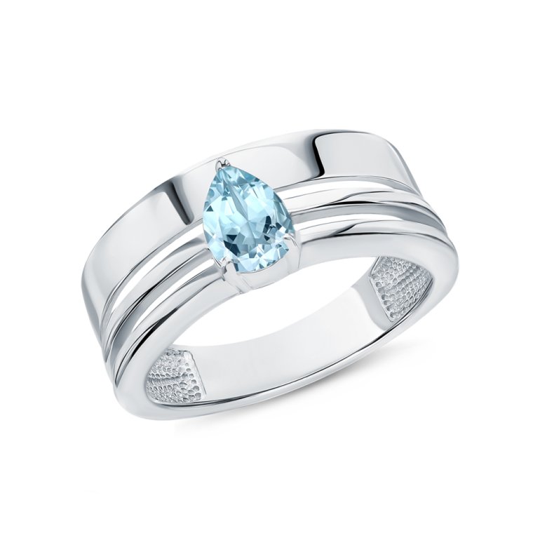 Кольцо с 1 топазом скай природным, 0.818 карат, тип огранки Б; Серебро 925 пробы.