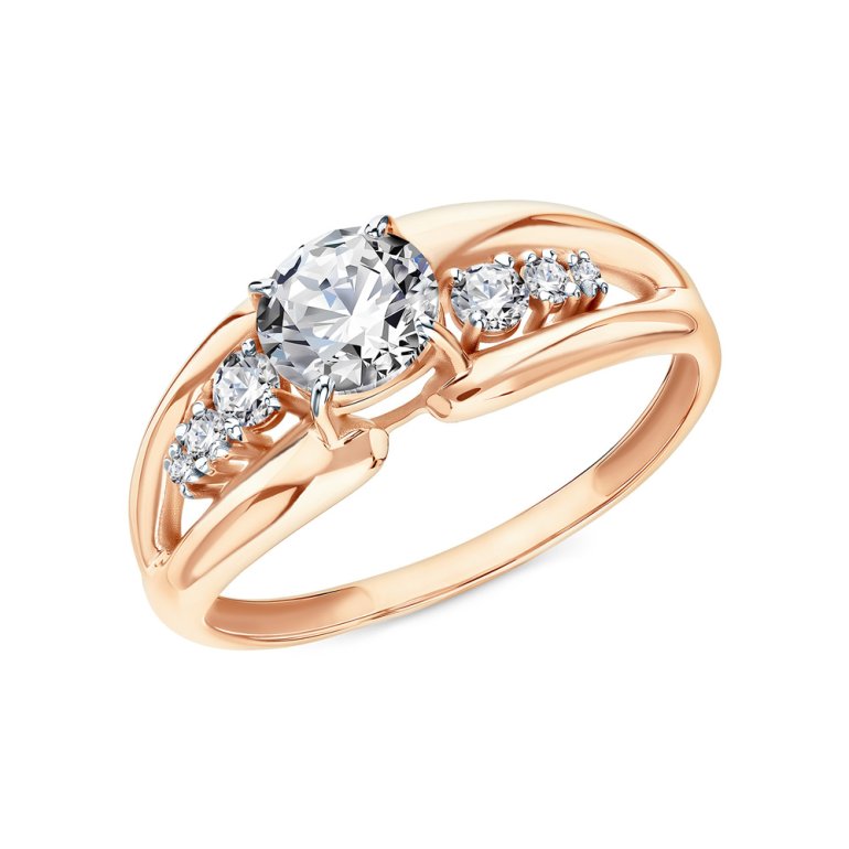 Кольцо, вставка: фианитом бесцветным; Розовое золото 585 пробы.