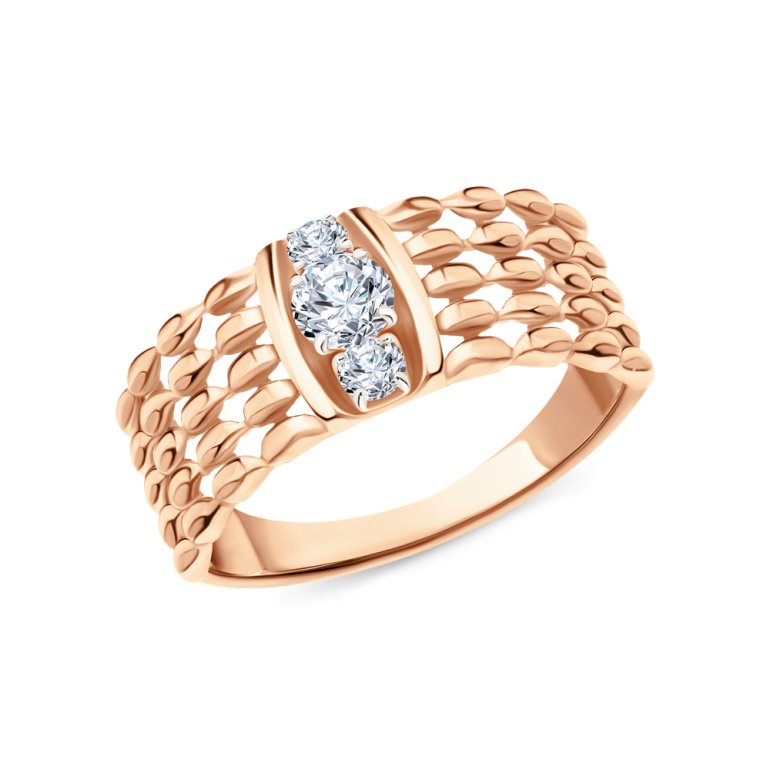 Кольцо, вставка: фианитом бесцветным; Розовое золото 585 пробы.