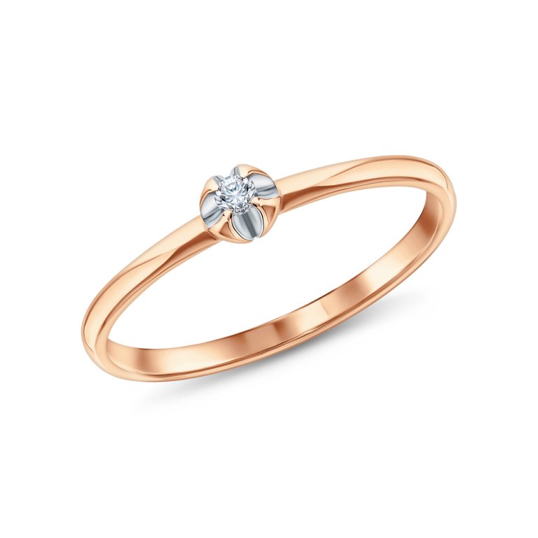 Кольцо с 1 бриллиантом, 0.028 карат, огранка круг 57 граней, цвет 3, чистота 6, тип огранки А; Розовое золото 585 пробы.