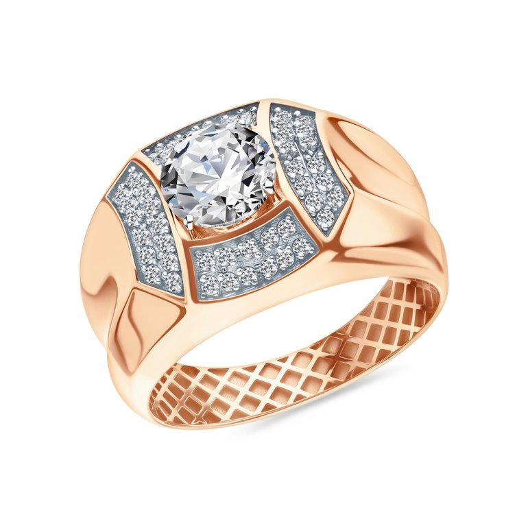 Кольцо, вставка: фианит бесцветный; Розовое золото 585 пробы.