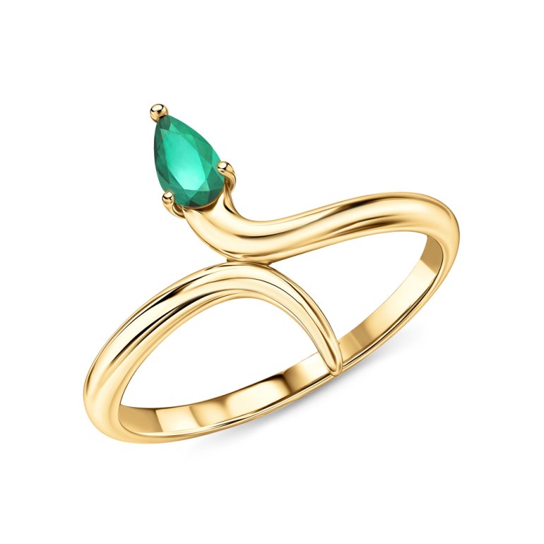 Кольцо с 1 изумрудом природным, 0.17 карат, цвет 3, чистота 3, тип огранки Б; Желтое золото 585 пробы.