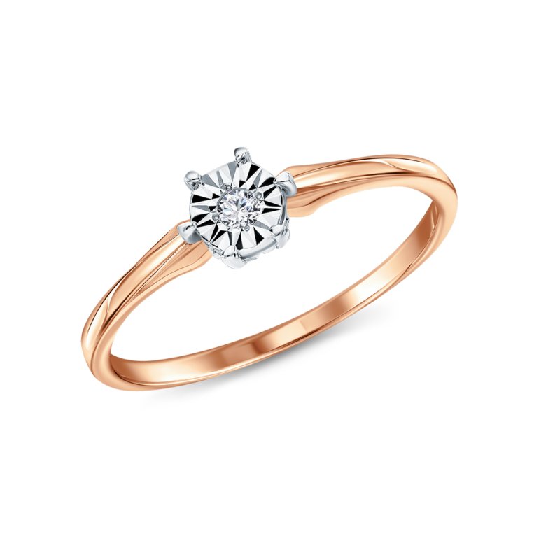Кольцо с 1 бриллиантом природным, 0.019 карат, огранка круг 57 граней, цвет 4, чистота 5, тип огранки А; Розовое золото 585 пробы.