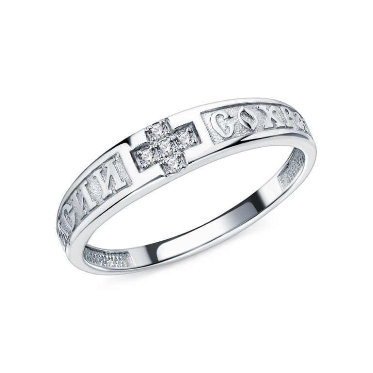Серебряное кольцо "Спаси и сохрани" 15040005 Кольца SUNLIGHT | V4.Ru: Маркетплейс