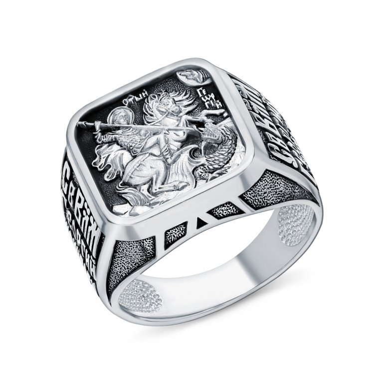 Серебряное кольцо "ВЕЛИКОМУЧЕНИК ГЕОРГИЙ ПОБЕДОНОСЕЦ" 14038 Кольца SUNLIGHT | V4.Ru: Маркетплейс