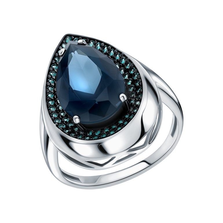 Кольцо, вставка: ситалл топаз лондон;  ситалл зеленый; Серебро 925 пробы.
