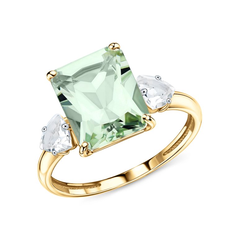 Золотое кольцо с празиолит природными и топазами природными 131-1773-30* Кольца SUNLIGHT | V4.Ru: Маркетплейс