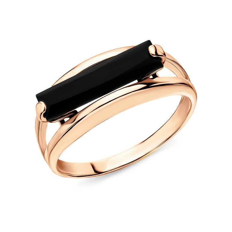 Кольцо с 1 агатом черным природным, тип огранки Б; Розовое золото 585 пробы.