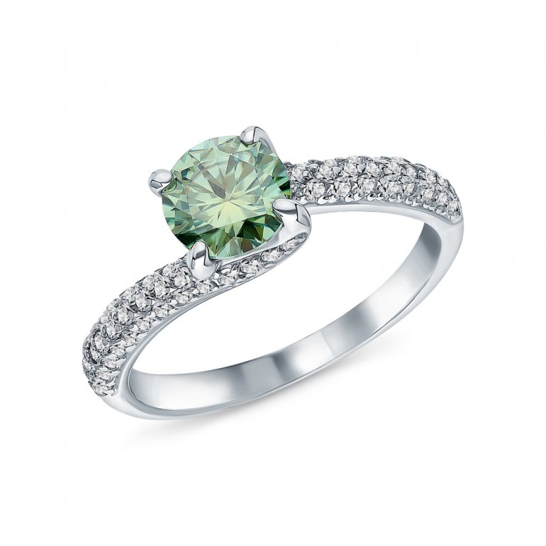 Кольцо с 1 муассанитом параиба, 0.8 карат, тип огранки В; фианитом бесцветным; Серебро 925 пробы.