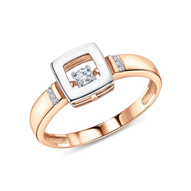 Кольцо с 1 бриллиантом, 0.104 карат, огранка круг 57 граней, цвет 3, чистота 6, тип огранки А; 6 бриллиантами, 0.013 карат, огранка круг 17 граней, цвет 2, чистота 2, тип огранки А; Розовое и белое золото 585 пробы.
