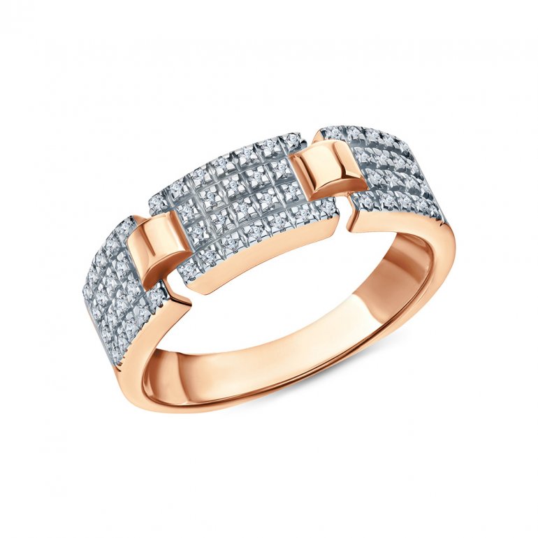 Кольцо с 60 бриллиантами природными, 0.137 карат, огранка круг 17 граней, цвет 2, чистота 2, тип огранки Б; Розовое золото 585 пробы.
