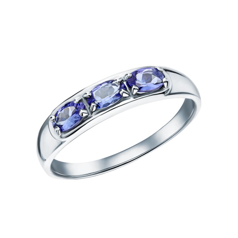 Кольцо с 1 танзанитом природным, 0.69 карат, тип огранки Б; 1 танзанитом природным, 0.05 карат, тип огранки Б; 1 танзанитом природным, 0.05 карат, тип огранки Б; Серебро 925 пробы.