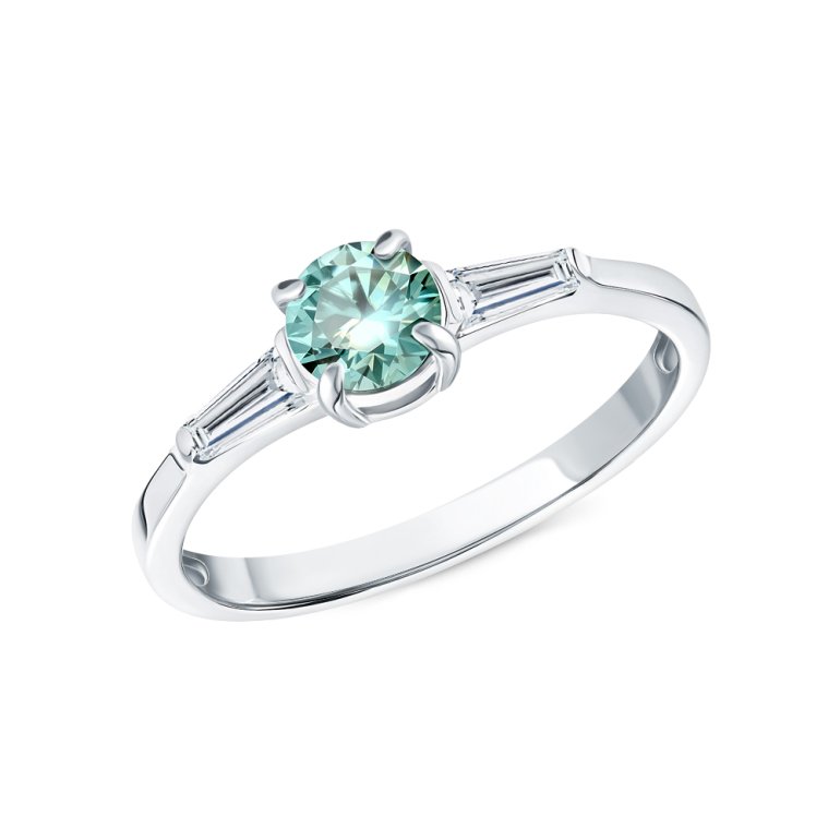 Кольцо с 1 муассанитом параиба, 0.5 карат, тип огранки В; фианитом бесцветным; Серебро 925 пробы.