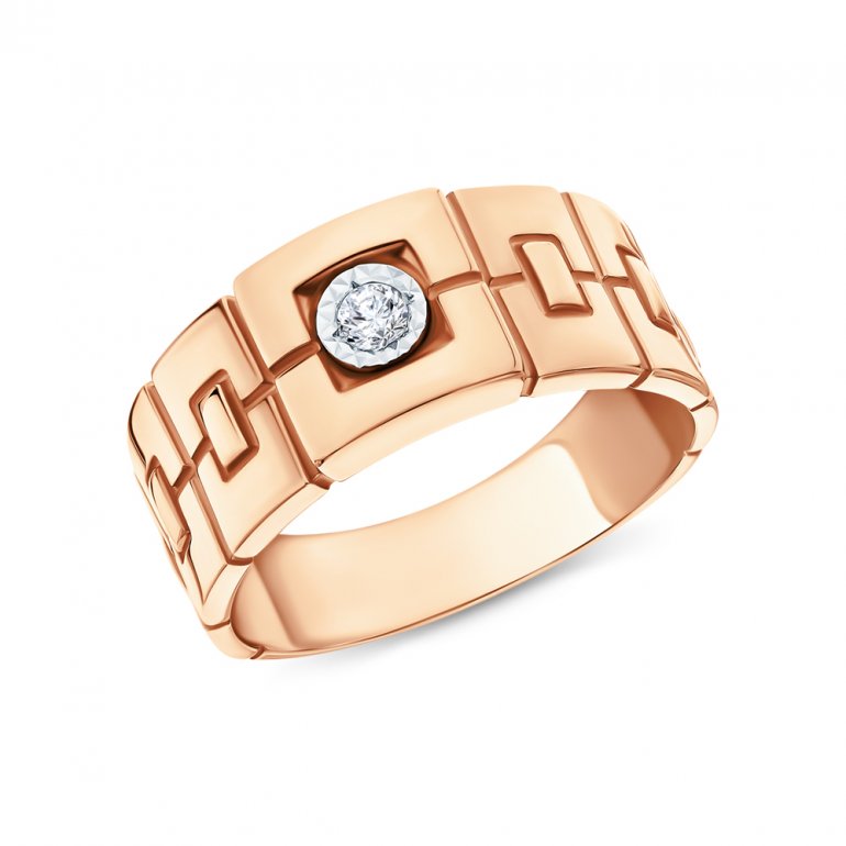 Кольцо с 1 бриллиантом, 0.077 карат, огранка круг 57 граней, цвет 4, чистота 6, тип огранки А; Розовое и белое золото 585 пробы.