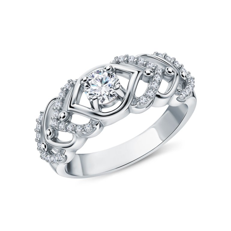 Серебряное кольцо с муассанитом и фианитами S43270-K9W-01 Кольца SUNLIGHT | V4.Ru: Маркетплейс