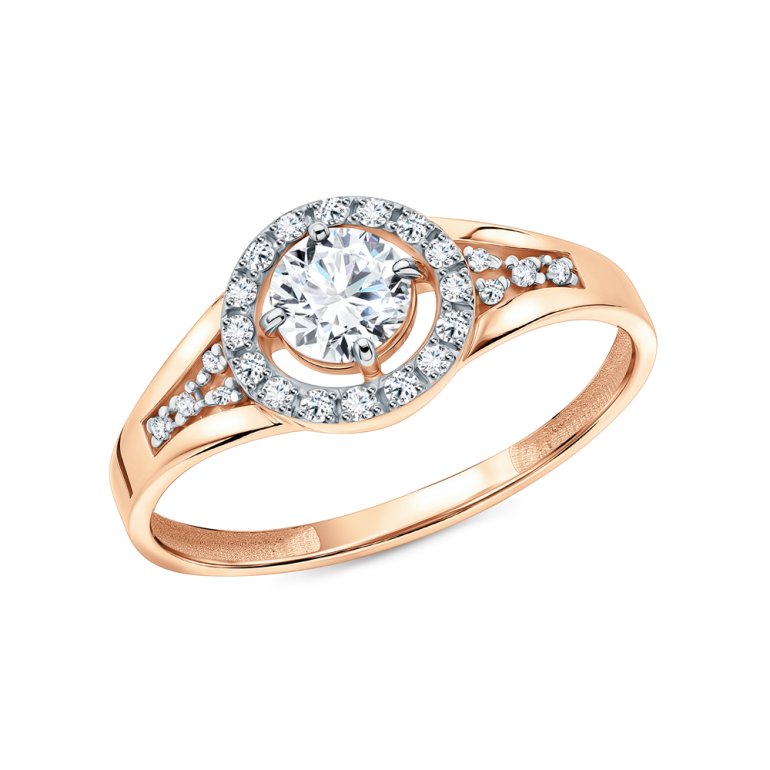 Кольцо, вставка: фианит бесцветный; Розовое золото 585 пробы.