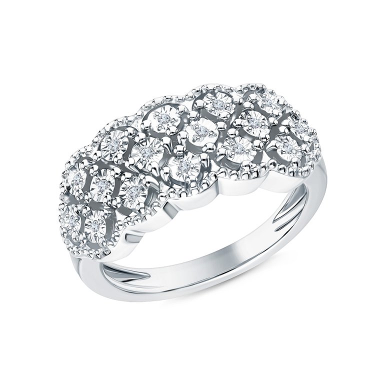 Кольцо с 16 бриллиантами природными, 0.064 карат, огранка круг 17 граней, цвет 2, чистота 4, тип огранки Б; Серебро 925 пробы.