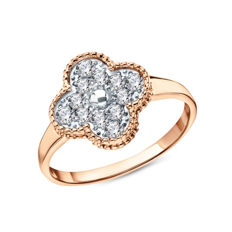 Кольцо, вставка: фианитом бесцветным;  фианитом бесцветным; Розовое золото 585 пробы.