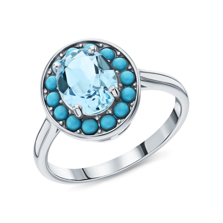 Серебряное кольцо с бирюзой синтетической и топазом природным