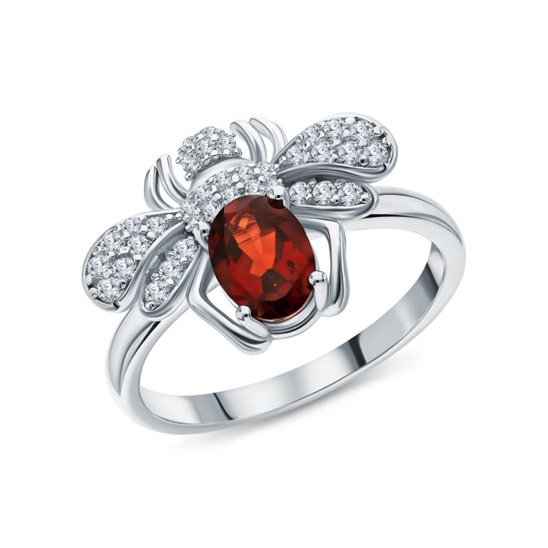Кольцо с 1 гранатом природным, 1. карат;  фианитом бесцветным; Серебро 925 пробы.