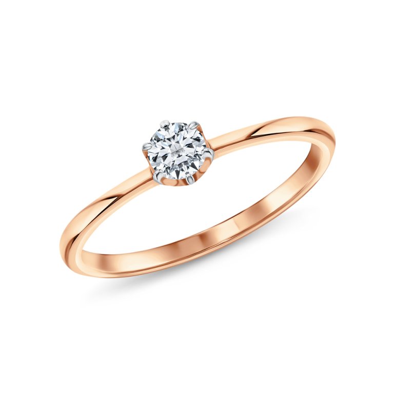 Кольцо с 1 бриллиантом, 0.229 карат, огранка круг 57 граней, цвет 4, чистота 6, тип огранки А; Розовое золото 585 пробы.