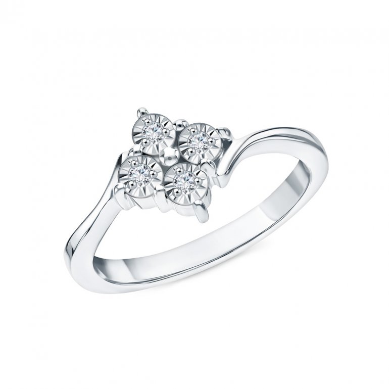 Кольцо с 4 бриллиантами природными, 0.02 карат, огранка круг 17 граней, цвет 2, чистота 4, тип огранки Б; Серебро 925 пробы.