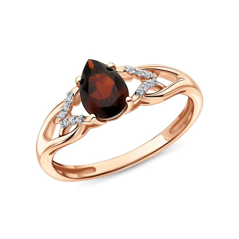 Кольцо с 1 гранатом природным, 0.85 карат, тип огранки Б; фианитом бесцветным; Розовое золото 585 пробы.
