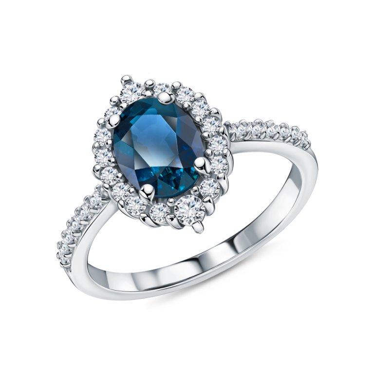 Кольцо с 1 топазом лондон природным, 1.55 карат;  фианитом бесцветным; Серебро 925 пробы.