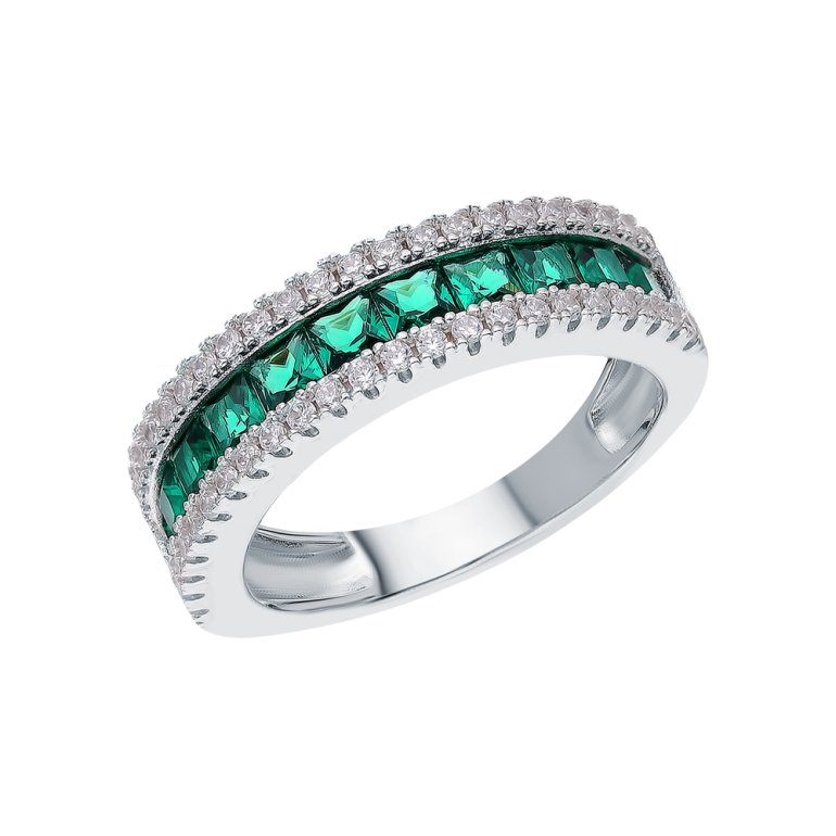 Кольцо, вставка: фианитом бесцветным;  фианит зеленый; Серебро 925 пробы.