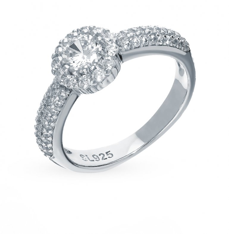 Серебряное кольцо с фианитами S51740-K9W-01 Кольца SUNLIGHT | V4.Ru: Маркетплейс