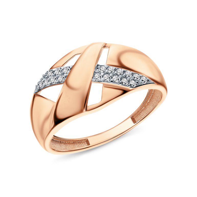Кольцо, вставка: фианит бесцветный; Розовое золото 585 пробы.