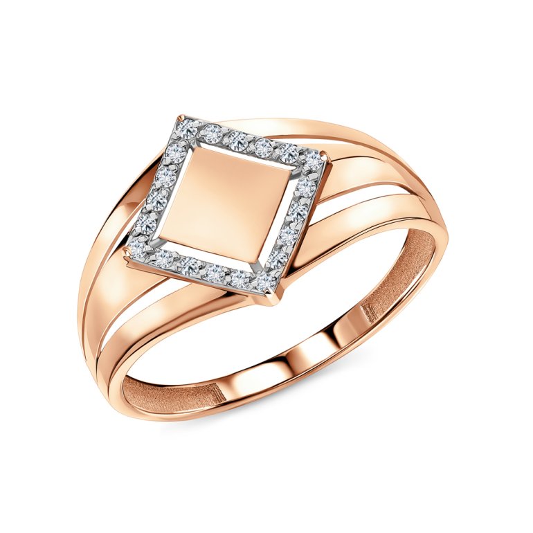 Кольцо, вставка: фианитом бесцветным; Розовое золото 585 пробы.
