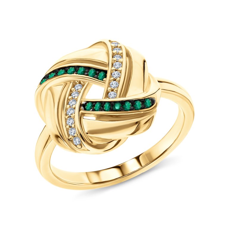 Кольцо с 14 агатами зелеными природными, 0.07 карат;  фианитом бесцветным; Серебро 925 пробы.