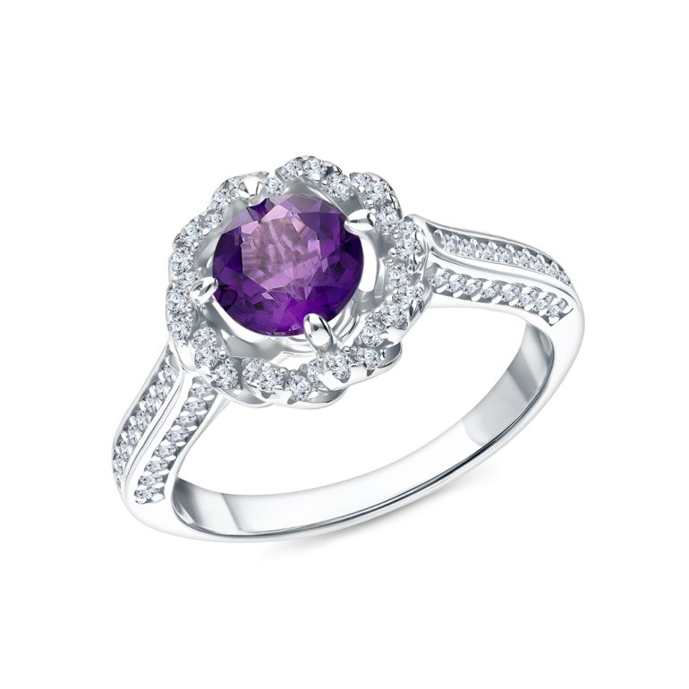 Кольцо, вставка: аметист природный;  фианитом бесцветным; Серебро 925 пробы.