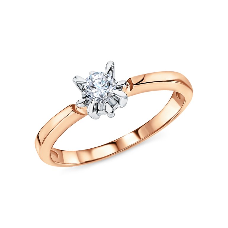 Кольцо с 1 бриллиантом, 0.191 карат, огранка круг 57 граней, цвет 4, чистота 5, тип огранки А; Розовое и белое золото 585 пробы.