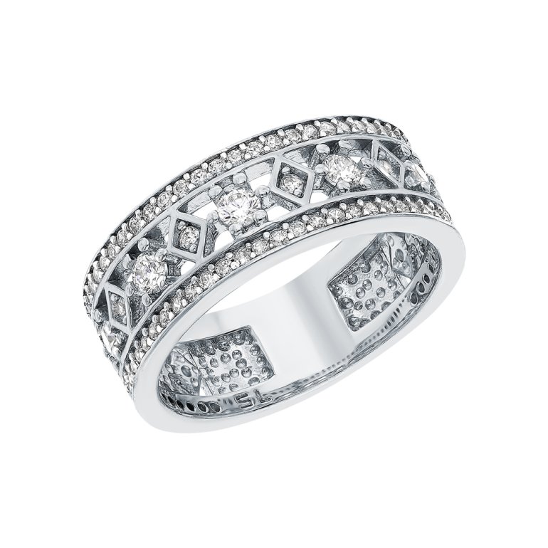 Серебряное кольцо с фианитами S5439-K9W-01 Кольца SUNLIGHT | V4.Ru: Маркетплейс