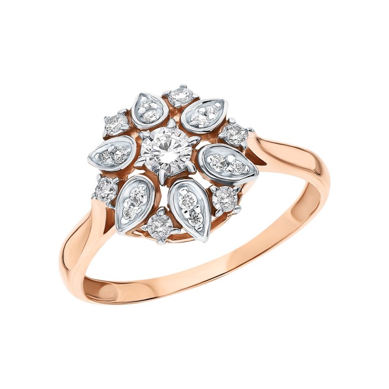 Кольцо, вставка: куб. цирконий; Розовое золото 585 пробы.
