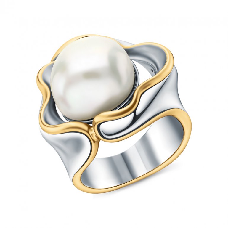 Кольцо с 1 жемчугом пресноводным культивированным белым, тип огранки В; Серебро 925 пробы.