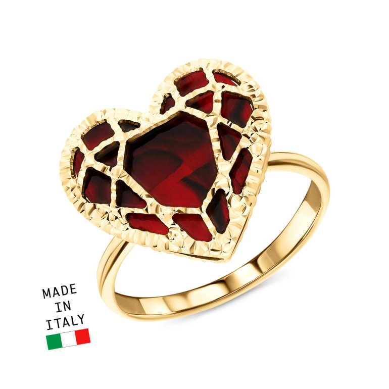 Кольцо с 1 перламутр красный; Желтое золото 585 пробы.