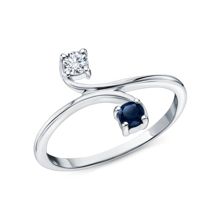 Кольцо с 1 сапфиром, 0.191 карат, чистота 2; 1 топазом бесцветным природным, 0.14 карат; Серебро 925 пробы.