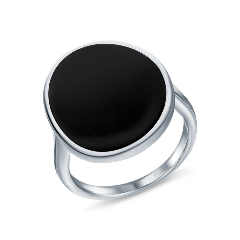 Кольцо с 1 агатом черным природным, огранка четырехлистник, тип огранки Б; Серебро 925 пробы.