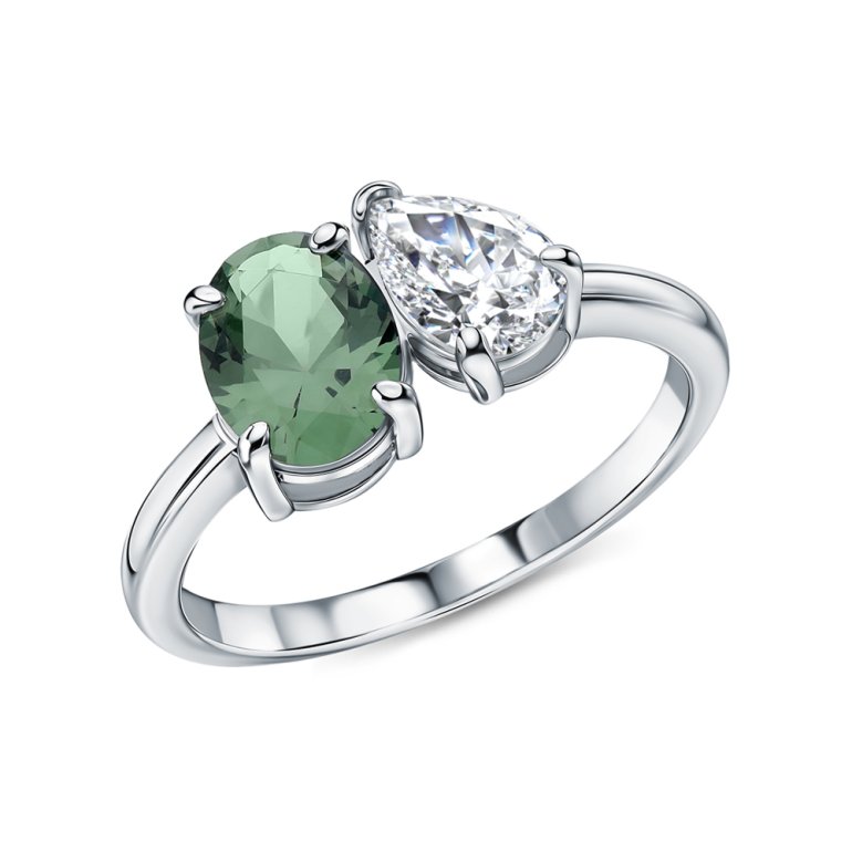 Кольцо, вставка: фианит зеленый;  фианитом бесцветным; Серебро 925 пробы.
