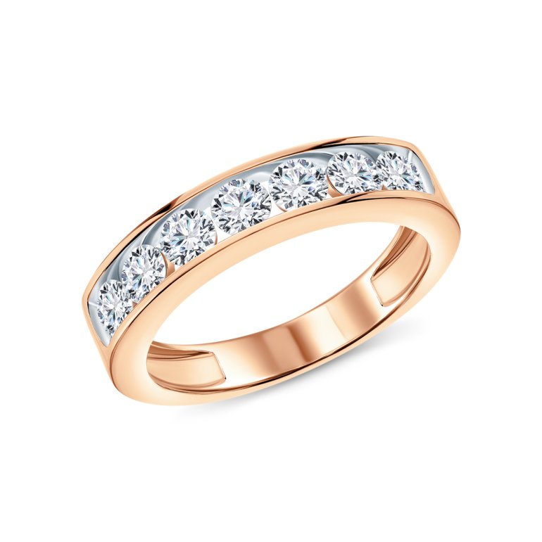 Кольцо с 7 бриллиантами выращенными, 1.099 карат, огранка круг 57 граней, цвет 2, чистота 4, тип огранки А; Розовое золото 585 пробы.