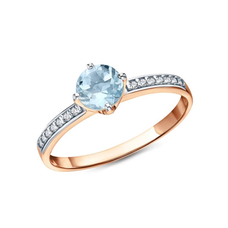 Кольцо с 1 топазом скай, 0.5 карат, тип огранки В; фианитом бесцветным; Розовое золото 585 пробы.
