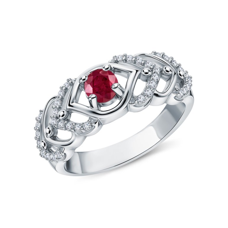 Серебряное кольцо с рубином и фианитами S43274-K9W-01 Кольца SUNLIGHT | V4.Ru: Маркетплейс