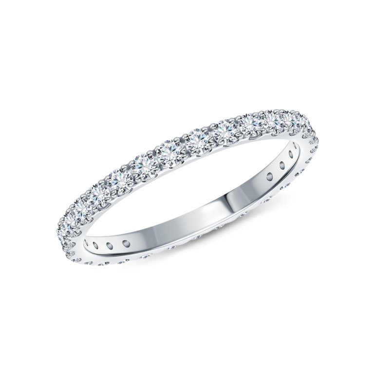 Кольцо с 29 бриллиантами выращенными, 0.961 карат, огранка круг 57 граней, цвет 2, чистота 4, тип огранки А; Белое золото 585 пробы.