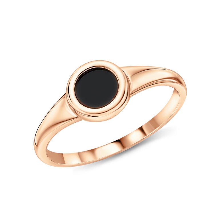Кольцо с 1 ониксом черным природным, тип огранки В; Розовое золото 585 пробы.