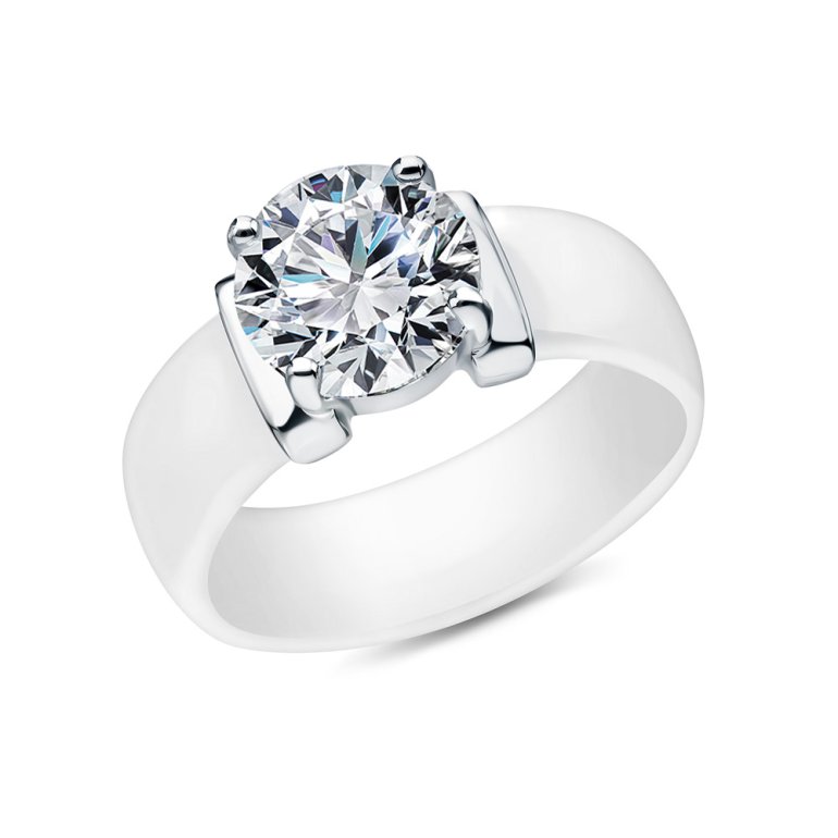 Кольцо, вставка: фианитом бесцветным;  керамика белая; Серебро 925 пробы.